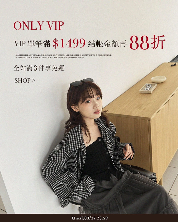 【 VIP會員日 】單筆滿$1,499結帳再享88折!全站3件免運!