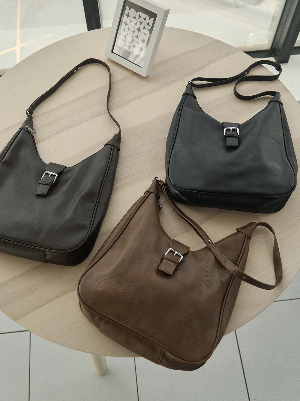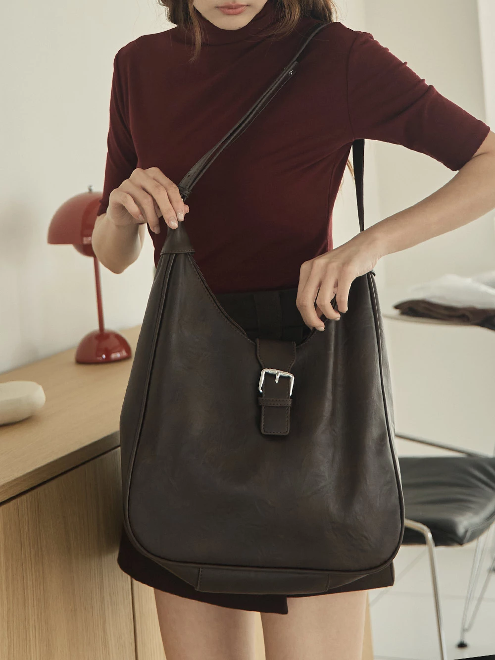 皮帶釦造型皮革單肩包