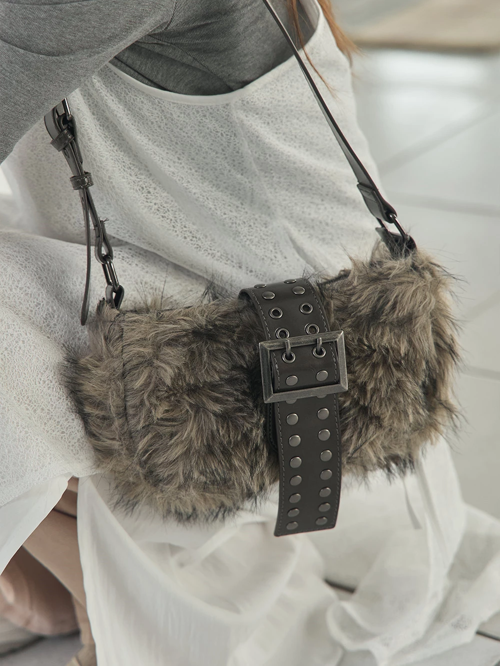 復古絨毛鉚釘單肩包