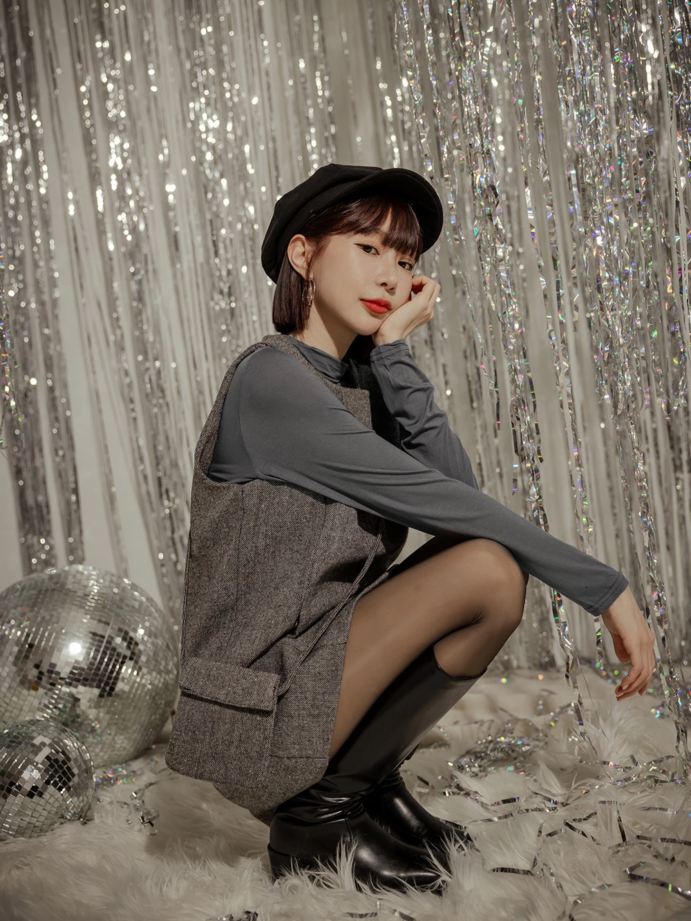 兩件式-高領打底衣+背心洋裝-附小包