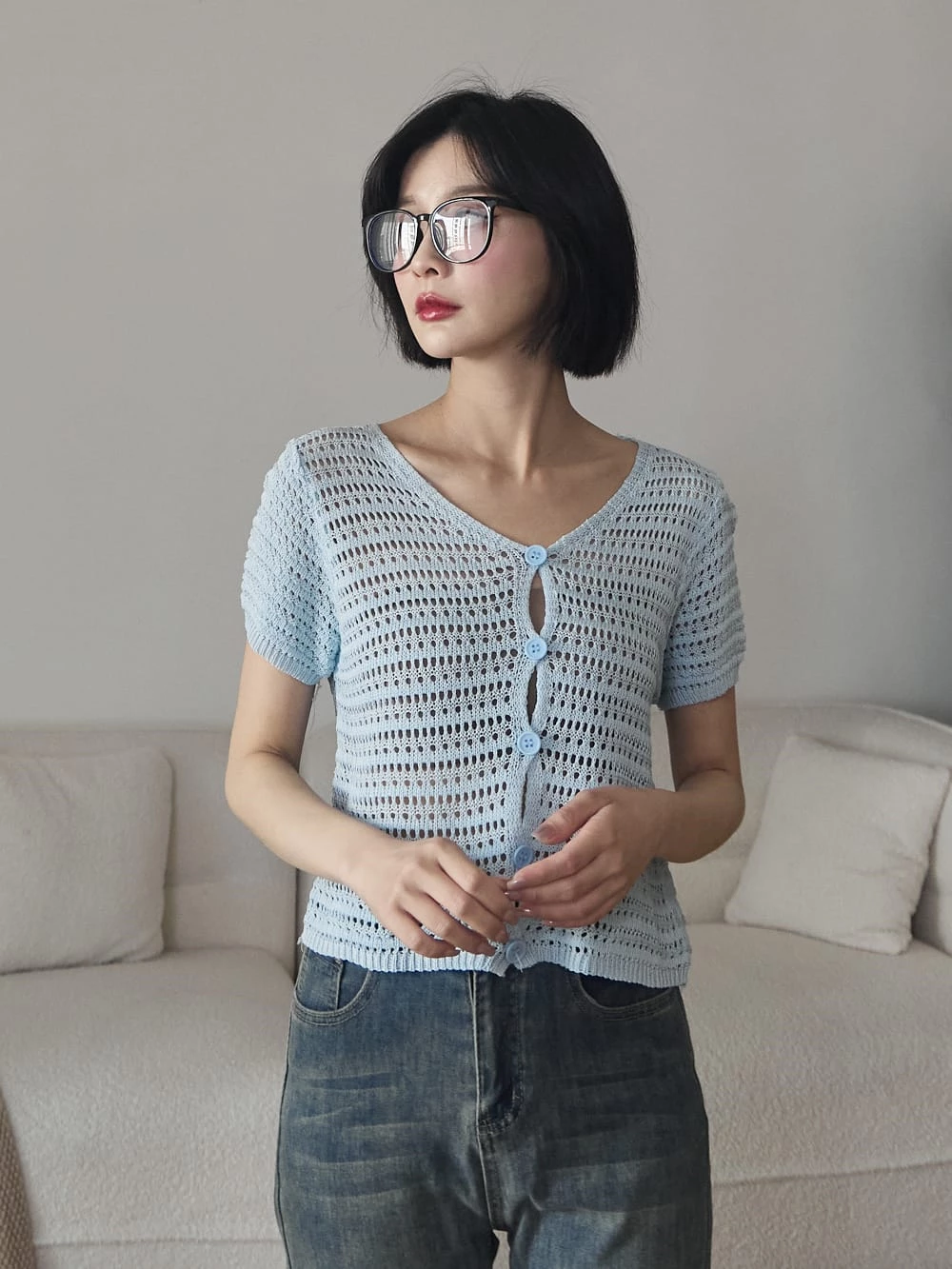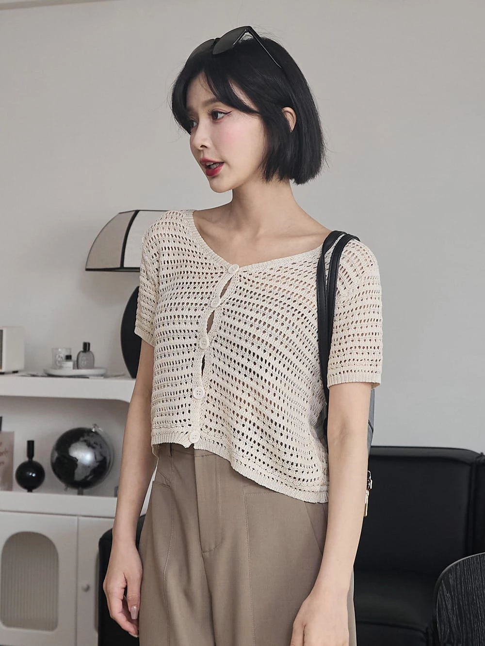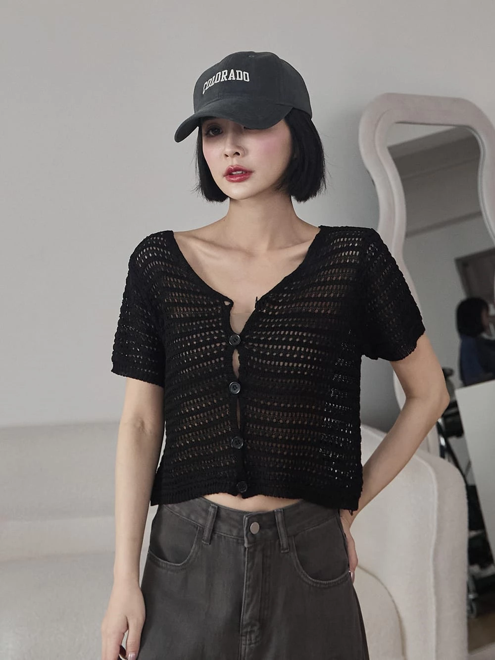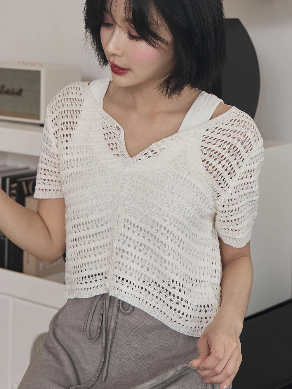簍空排釦針織短袖上衣