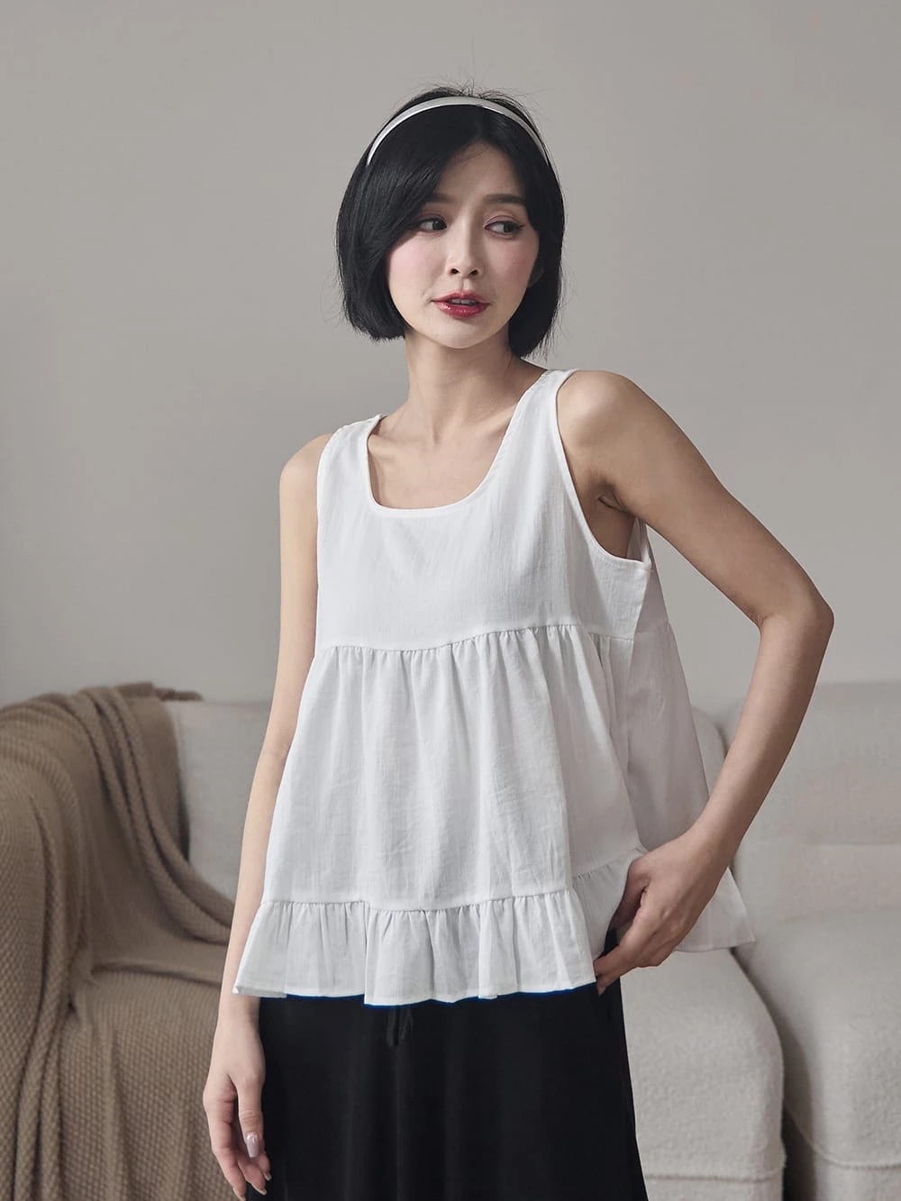 荷葉下擺造型寬鬆背心
