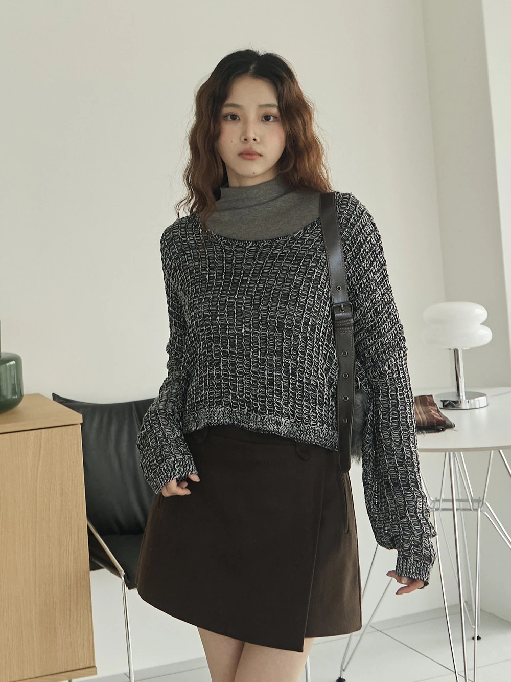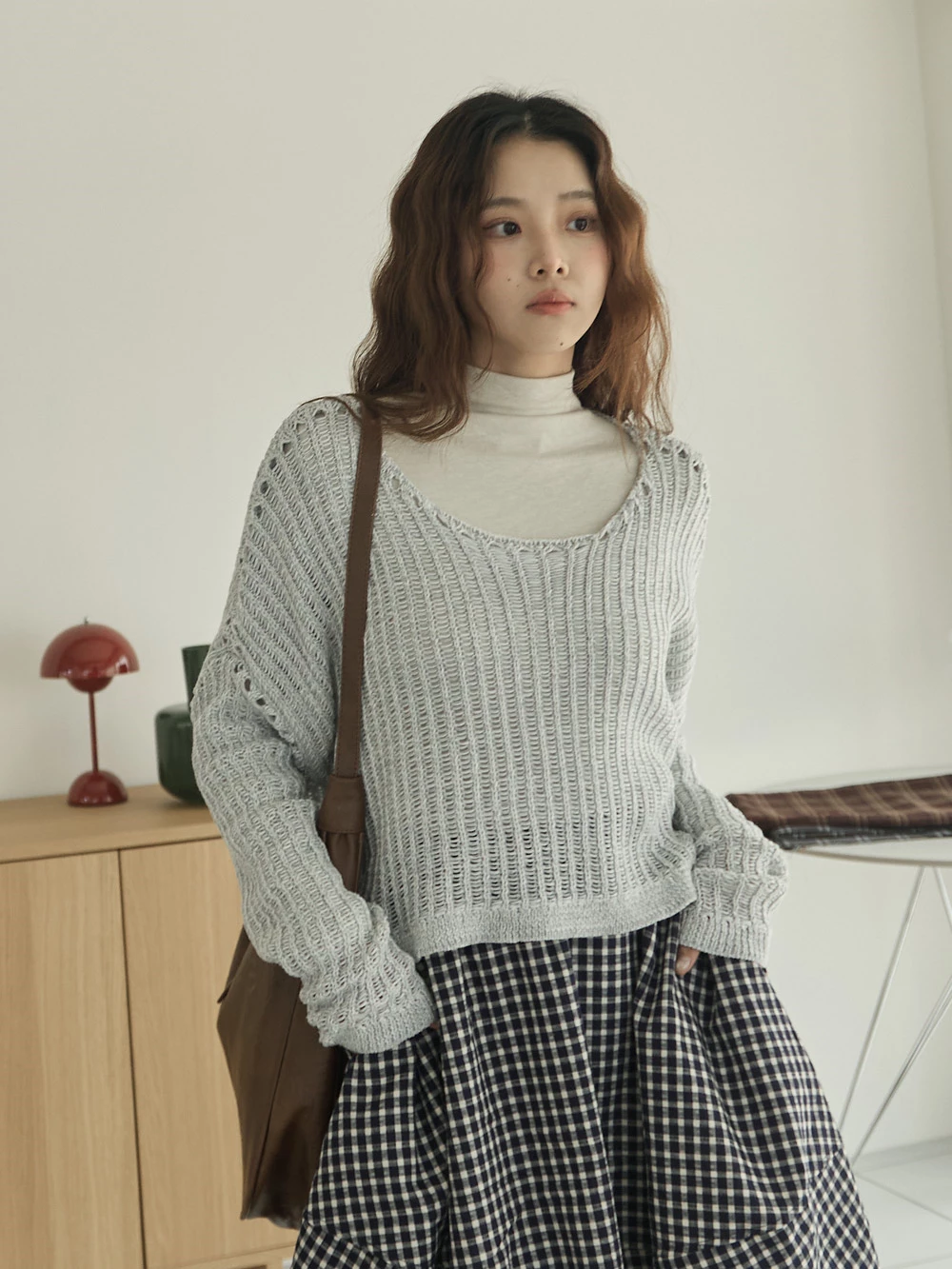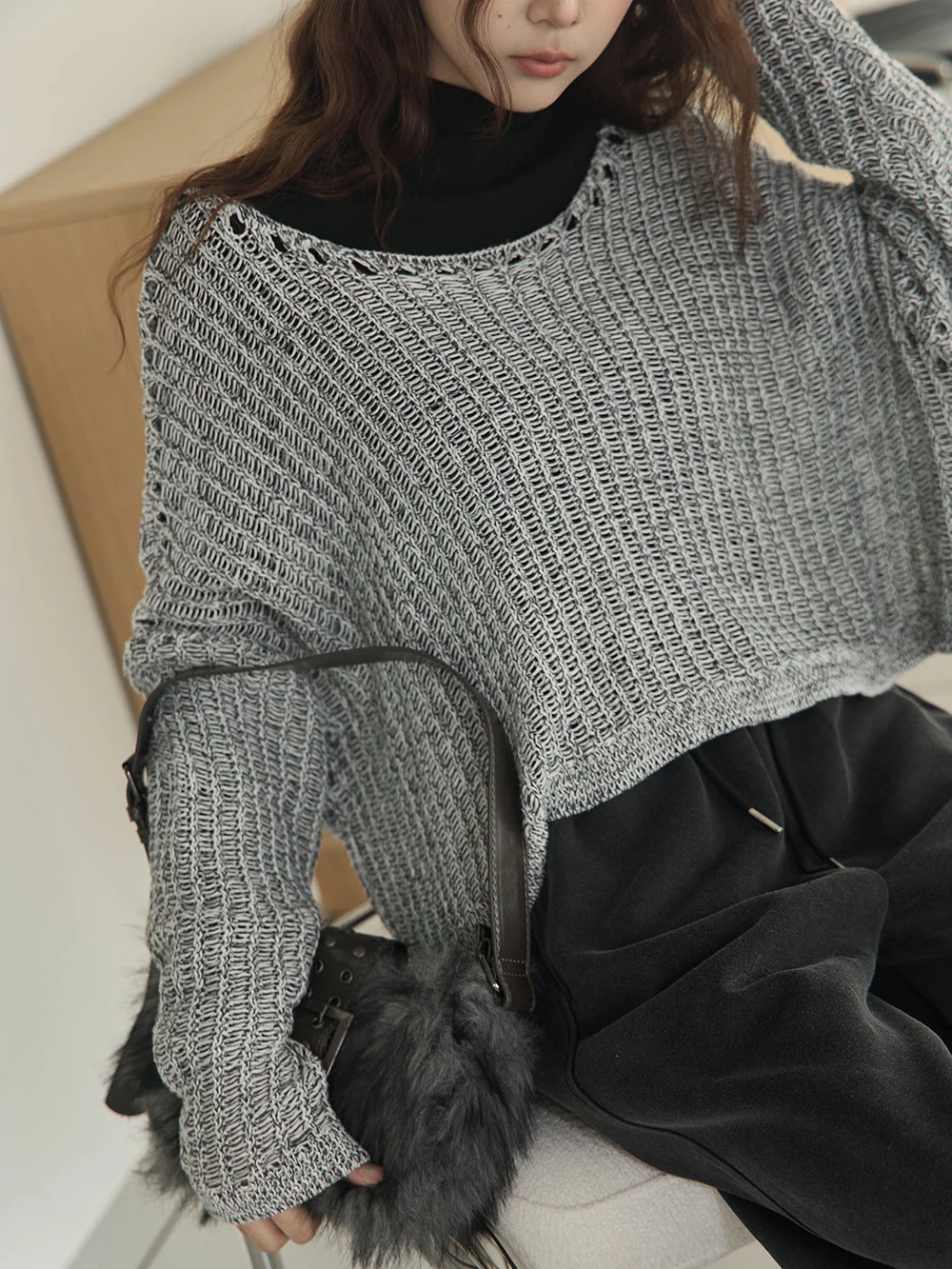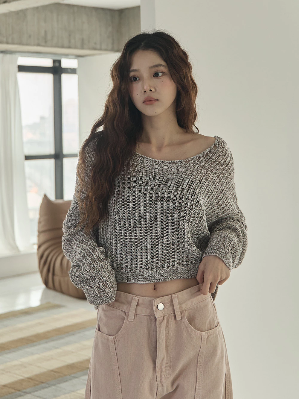 微透縷空寬鬆針織上衣